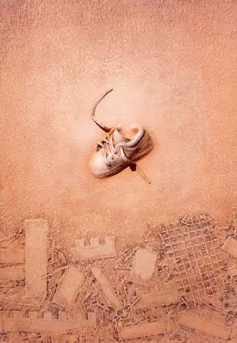 Baby Jenin 2003 Acrylic, sand, shoe, board on wood 50cm x 70cm
