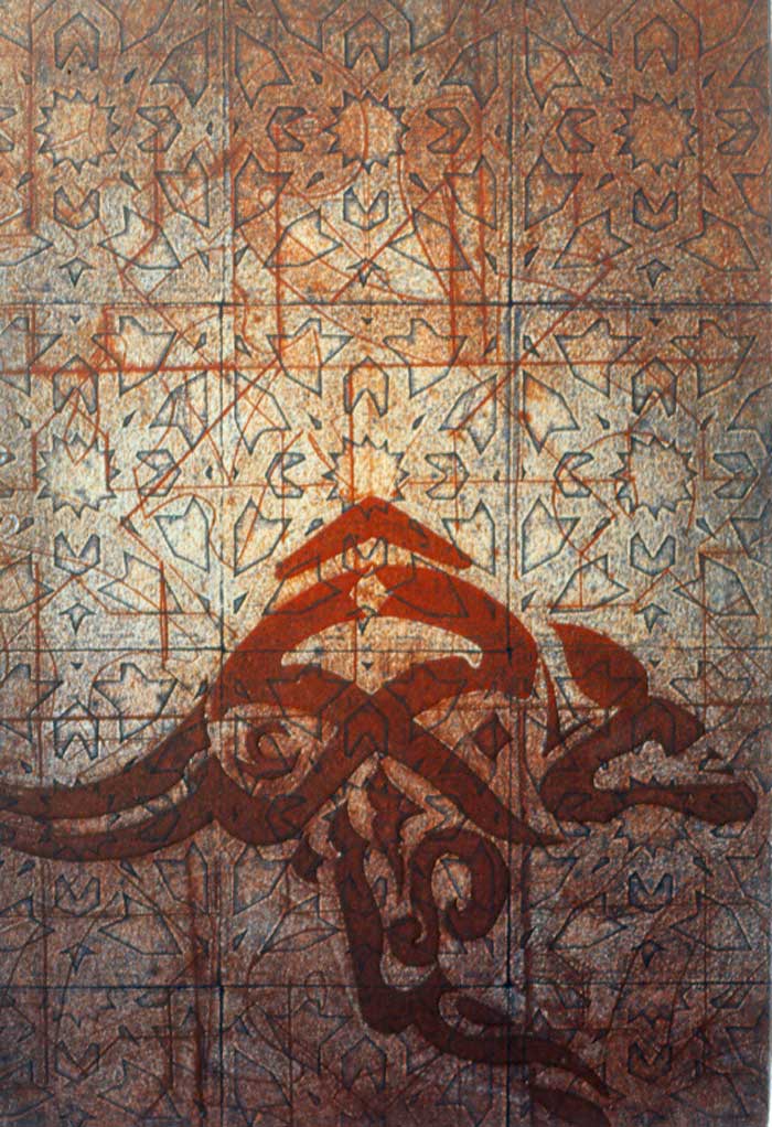 Fatima Killeen El Kanghar “Uluru at dusk” 2000 Colour collograph 28cm x 41cm